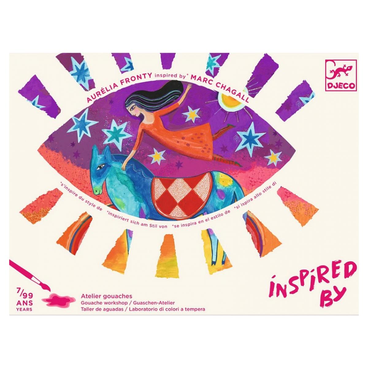 Une activité de peinture aux illustrations inspirées du style du grand maître surréaliste, Marc Chagall. L'enfant ajoute les couleurs par touches et les superpose pour révéler les secrets de ces personnages flottants dans les airs.