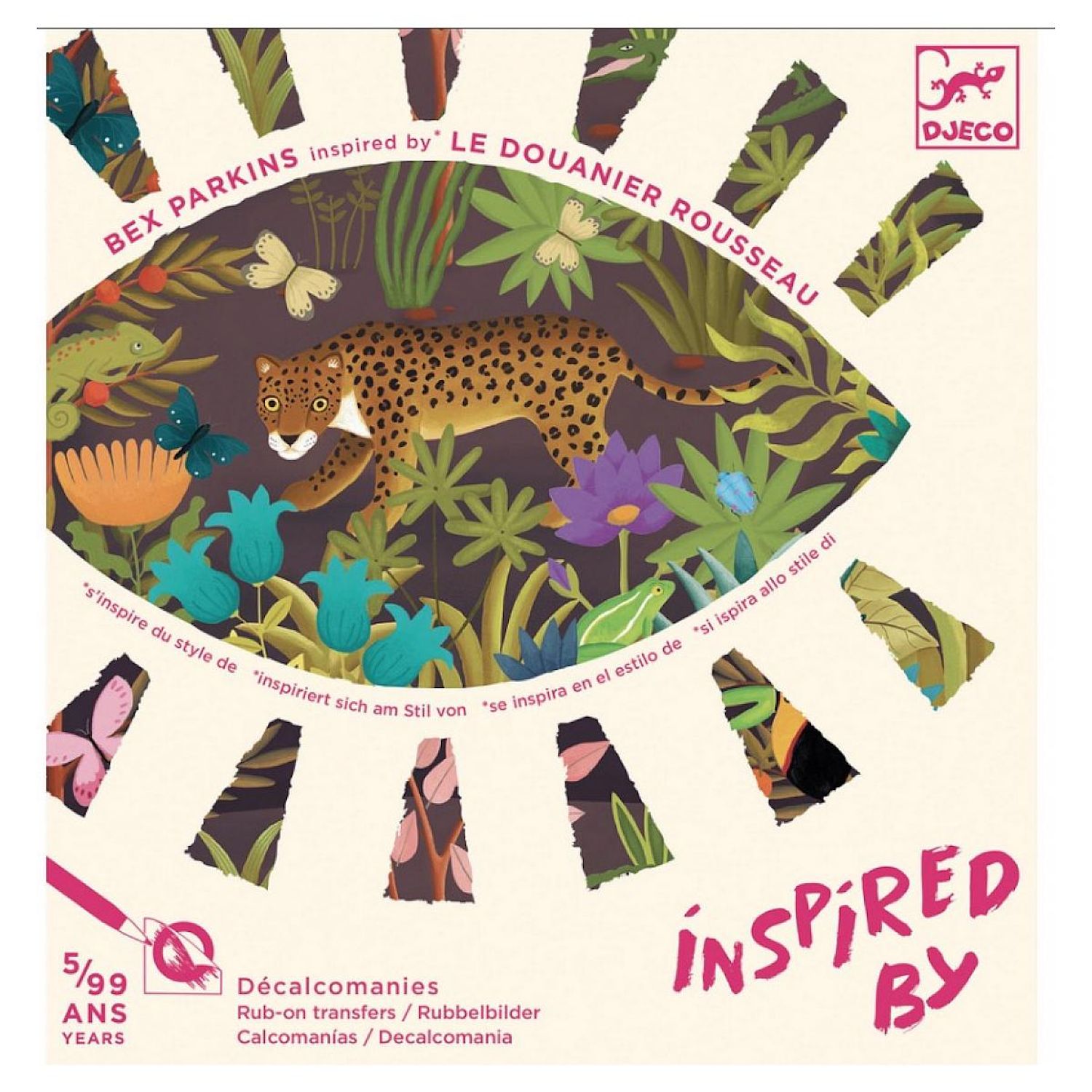 Une activité de décalcomanies qui propose de découvrir le style du célèbre Douanier Rousseau, grand maître de l'art naïf. Petit à petit, les images s'ajoutent et se superposent pour composer 4 tableaux représentant des animaux sauvages cachés dans une nature luxuriante !