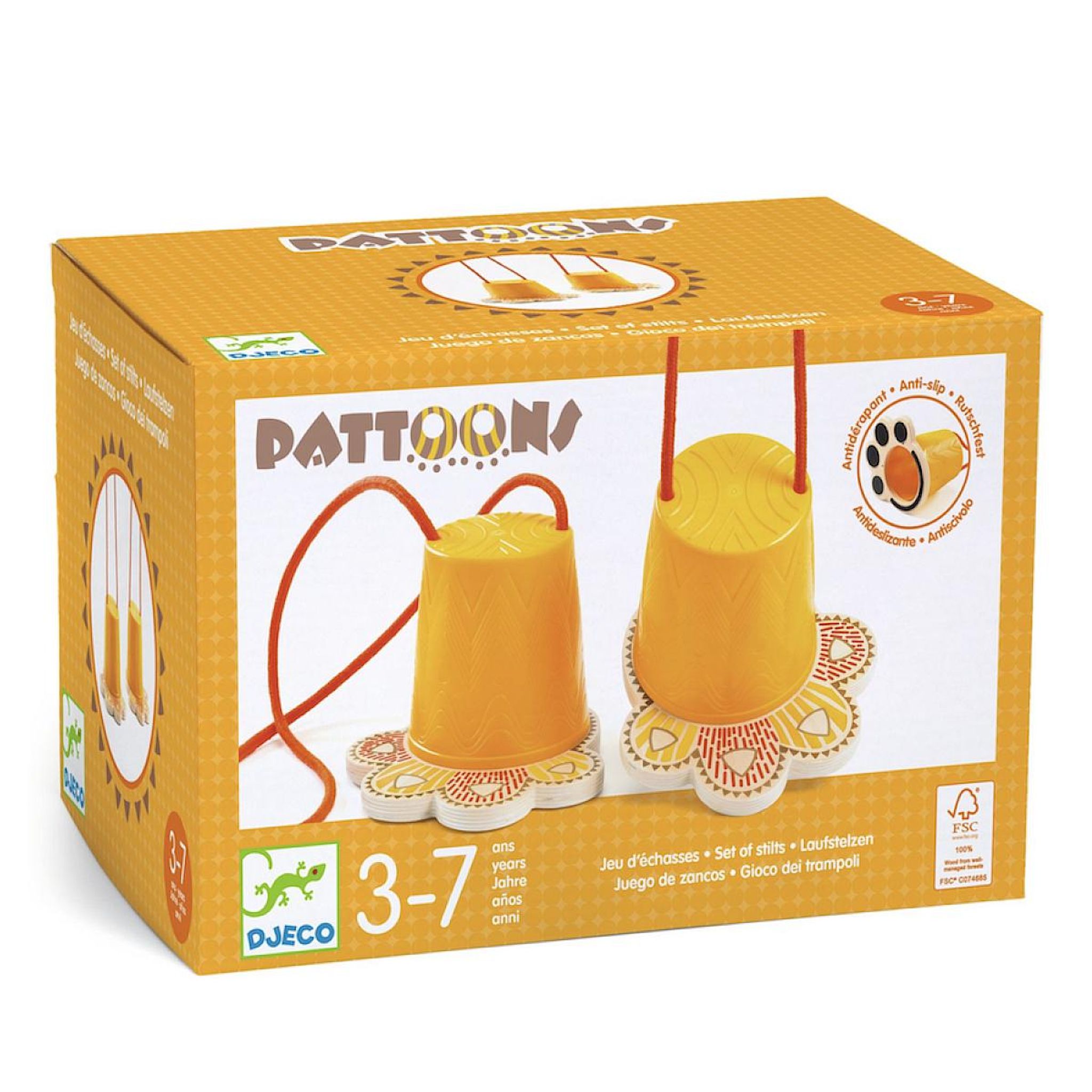 Pattoons est un jeu d'équilibre. L'enfant monte sur les 2 pattes et avance en essayant de garder l'équilibre : s'il met un pied à terre, c'est perdu ! Peut se jouer à plusieurs en course : les enfants chronomètrent le temps qu'ils mettent à faire un parcours prédéfini. Le meilleur temps remporte la compétition. Semelle antidérapante. La longueur des cordes est ajustable à la taille de l'enfant. Développe dextérité et équilibre. Produit en bois certifié FSC®.