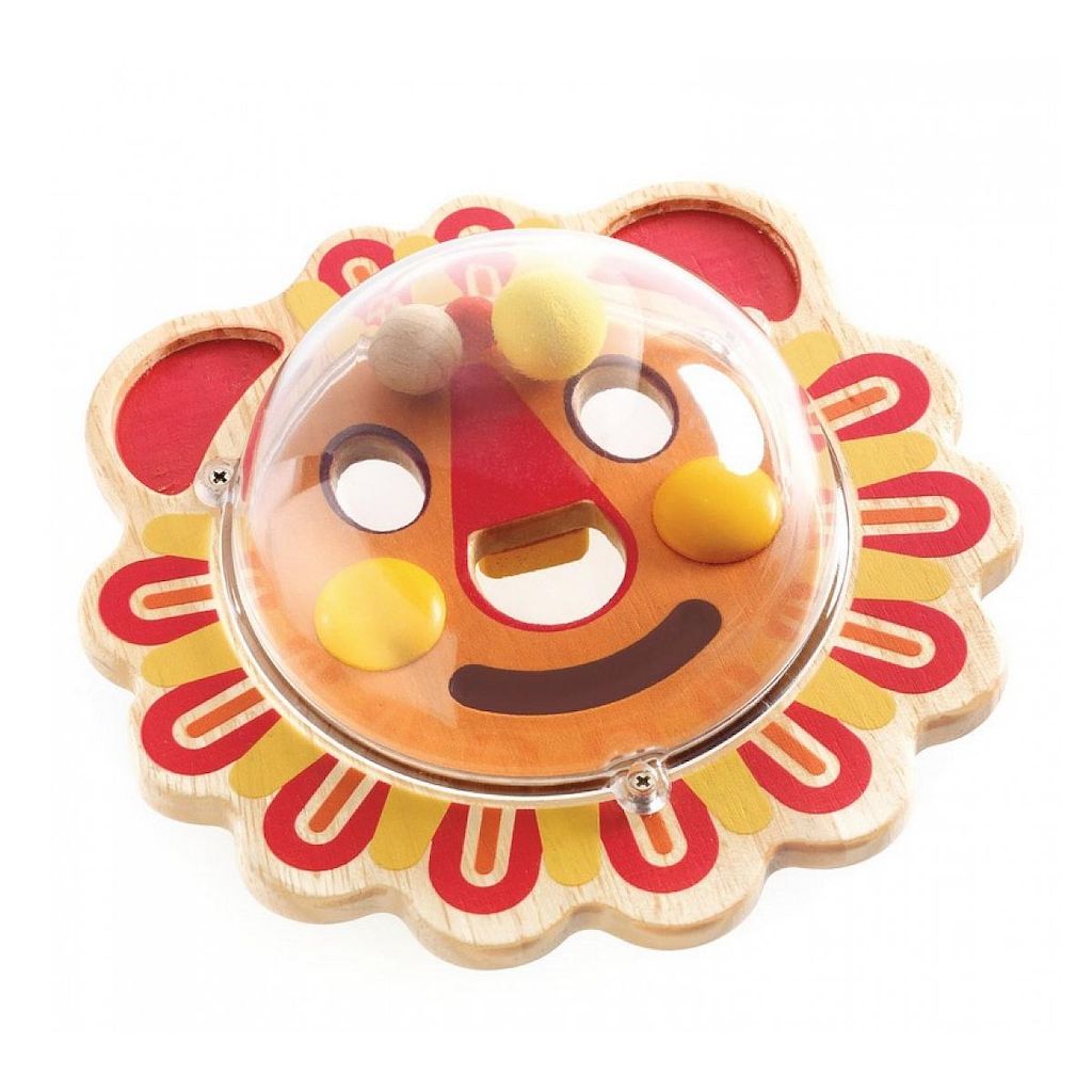 Piti Wizi est un jeu de manipulation pour les petits. Appuyé sur une table, l'enfant fait basculer la balle pour diriger facilement les billes autour des murets et vers le trou afin de les faire disparaître, puis recommence de l'autre côté avec une image différente.