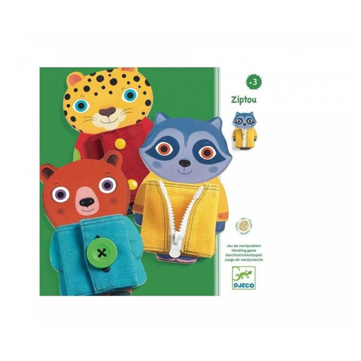 Ziptou est un jeu d'éveil en bois où vous retrouverez 3 animaux mignons portant un manteau. Votre enfant découvrira différentes formes et textures et apprendra à reconnaître les différents animaux. Les manteaux disposent d'un bouton ou d'un zip ou de deux boutons pressions, avec lesquels les enfants