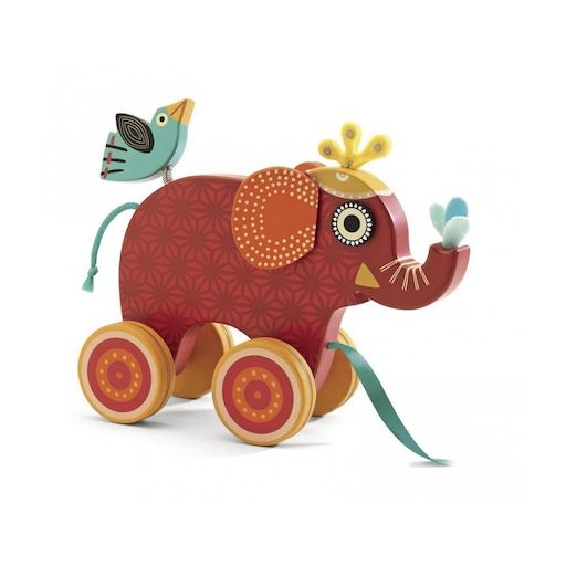 Un joli petit éléphant en bois Bollywood à traîner qui se dandine lorsqu'on le promène. Dès 1 an