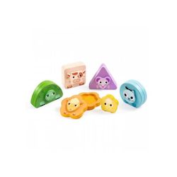 Jeu de cache-cache magnétique. Cinq animaux de la ferme qui s'ouvrent en laissant apparaître un bébé de la forme géométrique du parent.