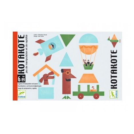Nouveau jeu de cartes Kotakote de chez Djeco, un jeu d'observation et de manipulation pour 2 à 6 joueurs à partir de 6 ans. Il vous faudra reproduire les dessins imposés. Pour cela il vous faudra retrouver les deux cartes nécessaires pour réaliser le dessin parmi vos cartes. Jeu de 54 cartes pour jouer de 2 à 6 joueurs à partir de 6 ans. Temps de jeu : 15 minutes. Dimensions: 15,6 x 11,7 x 2,8 cm