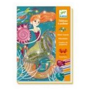 Coffret tableaux à pailleter, des images qui s'illuminent avec les paillettes. Un outil pour dévoiler les parties encollées. Les paillettes dans des pipettes pour être plus précis. Un pinceau pour faire glisser le surplus. Contenu: 4 cartes encollées 150x210 mm, 5 pipettes de paillettes colorées, 1