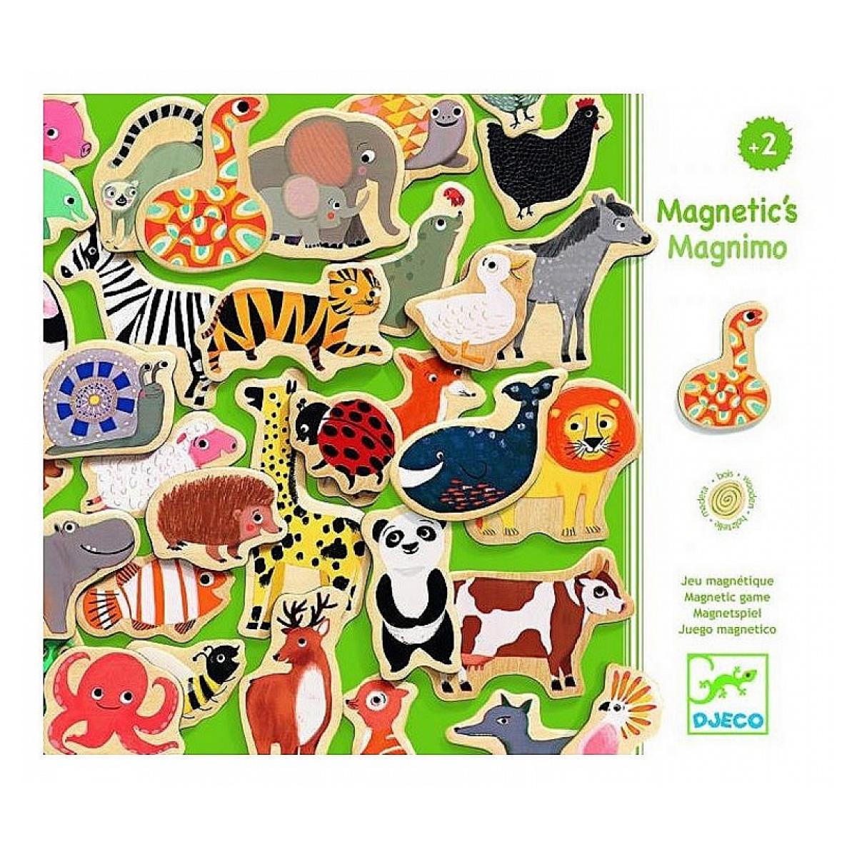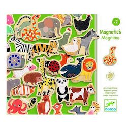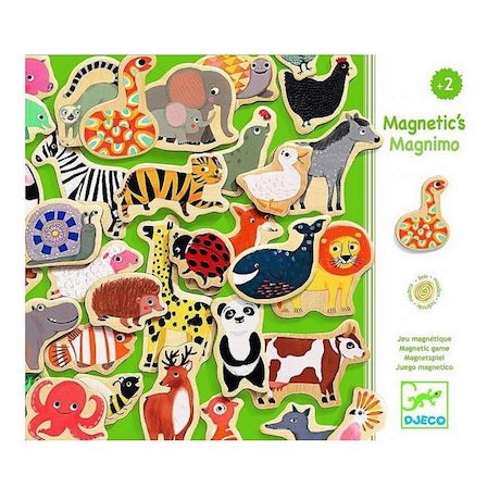 Jeu en bois aimantée, une collection d'animaux, tous plus beaux les uns que les autres, à coller partout et décoller tout le temps sur tous les supports magnétiques. Tableau blanc, réfrigérateur, etc.. Dès 2 ans. Djeco Ref DJ03124 FSC