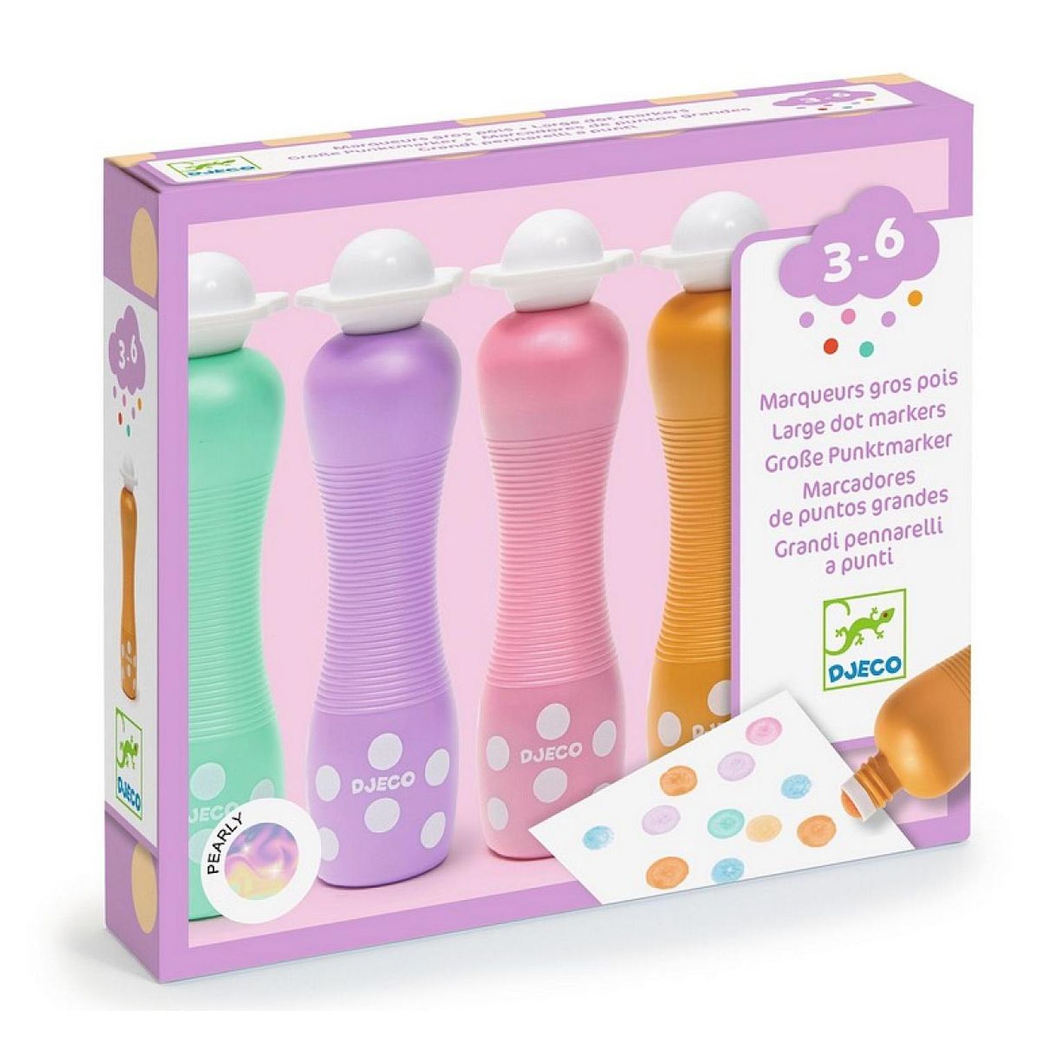 Des gros marqueurs mousse pour faire des points avec effet nacré. Avec leur forme ergonomique, ils tiennent facilement dans les mains des plus petits pour faire de jolis dessins ou coloriages. Une encre lavable pour ne pas tacher ses vêtements ou ses mains. Ultra lavables. Premiers feutres pour faire des points nacrés. Une gamme colorée originale pour varier ses créations !. Forme ergonomique : adaptée aux petites mains.