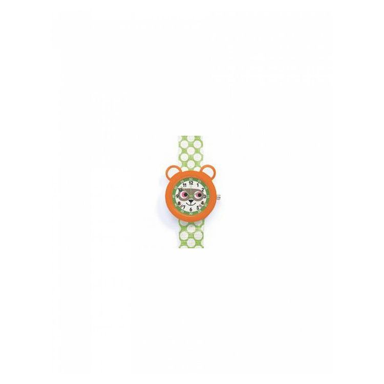 Découvrez la montre raton laveur de Djeco, une montre élégante et colorée pour apprendre à lire l'heure en s'amusant. De couleur vert et blanc sur le bracelet, vous allez beaucoup apprécié son cadran représentant une tête de raton laveur avec ses oreilles en volume. Cette jolie montre a un affichage