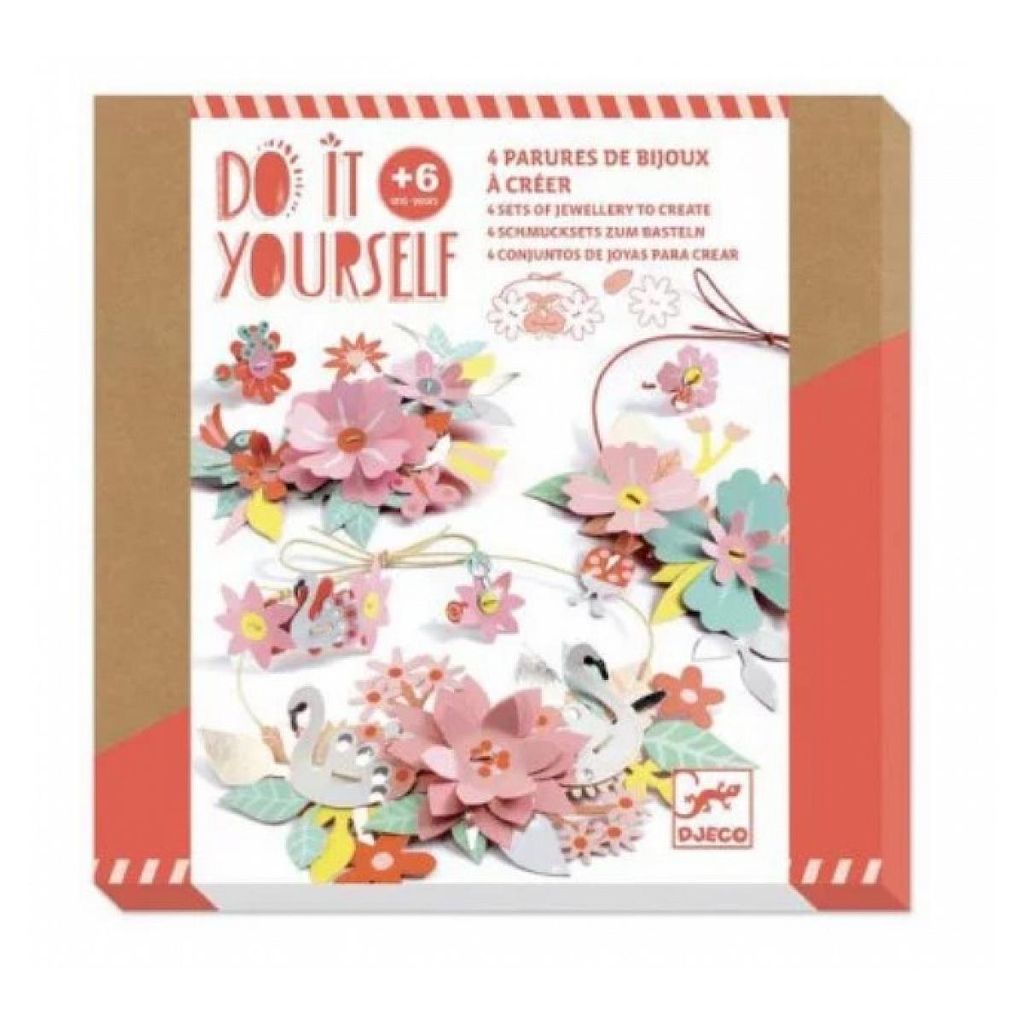 Grâce à ce joli kit créatif de chez Djeco, dans la gamme DIY, votre enfant pourra réaliser 4 parures de bijoux en papier dans un esprit floral très moderne.
