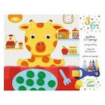 Peinture à l'éponge, coffret activité 3-6 ans 4 grands et très jolis tableaux, faciles à réaliser. Une nappe pour protéger la table. Un récipient pour mélanger les couleurs et tremper les éponges. 2 rouleaux, 1 pinceau, 4 éponges, 6 yeux mobiles et 4 bouteilles de gouache 30ml pour une super activité qui va en mettre plein les yeux! Dès 3 ans