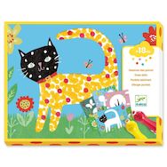 Un coffret créatif composé de 4 tableaux à décorer avec des marqueurs mousse : une torture, un chat, un papillon et un arbre à colorer de petits points rouge, bleu, rose ou jaune. Coffret adapté pour les petits.