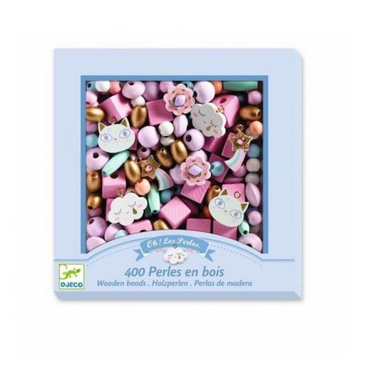 Découvrez les perles en bois arc en ciel de Djeco, 400 perles en bois pour réaliser des bijoux pour les enfants de 4 à 8 ans. Nuages, chats, fleurs et arc-en ciel à enfiler pour créer ses propres bijoux. Un assortiment de couleurs et de formes assorti pour un résultat toujours réussi. Des perles de