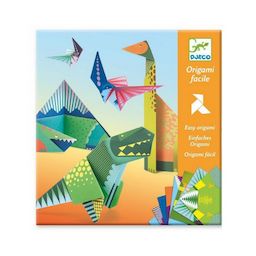 Pochette origami facile Dinosaures de Djeco pour les enfants à partir de 6 ans, une activité de pliage pour réaliser 24 dinosaures colorés. Pas à pas, pliez la feuille et réalisez plein de dinos. La pochette contient des feuilles imprimées recto verso et un livret explicatif pas à pas en couleurs. D