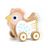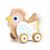 Une petite poule à pousser qui joue une douce mélodie quand elle roule. Le jouet contient une boîte à musique mécanique (pas d'électronique). La musique sonne aussi bien quand le jouet avance que lorsqu'il recule. Mélodie de « Ah vous dirais-je maman ». Produit en bois certifié FSC® Contenu : 1 jouet en bois à rouler avec une boîte à musique dedans.