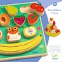 Puzz et Boom est un puzzle en bois facile à assembler et un jeu d'équilibre. Les fruits et le chat en relief tiennent debout et peuvent se poser en équilibre les uns sur les autres pour former une pyramide sur le socle « banane ». 1 puzzle et 1 jeu d'équilibre. Des pièces larges qui sont faciles à a