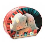 Téo le tricératops et son petit admirent la plaine et leurs amis. Un magnifique puzzle de 24 pièces dans une boîte en forme de dinosaure.