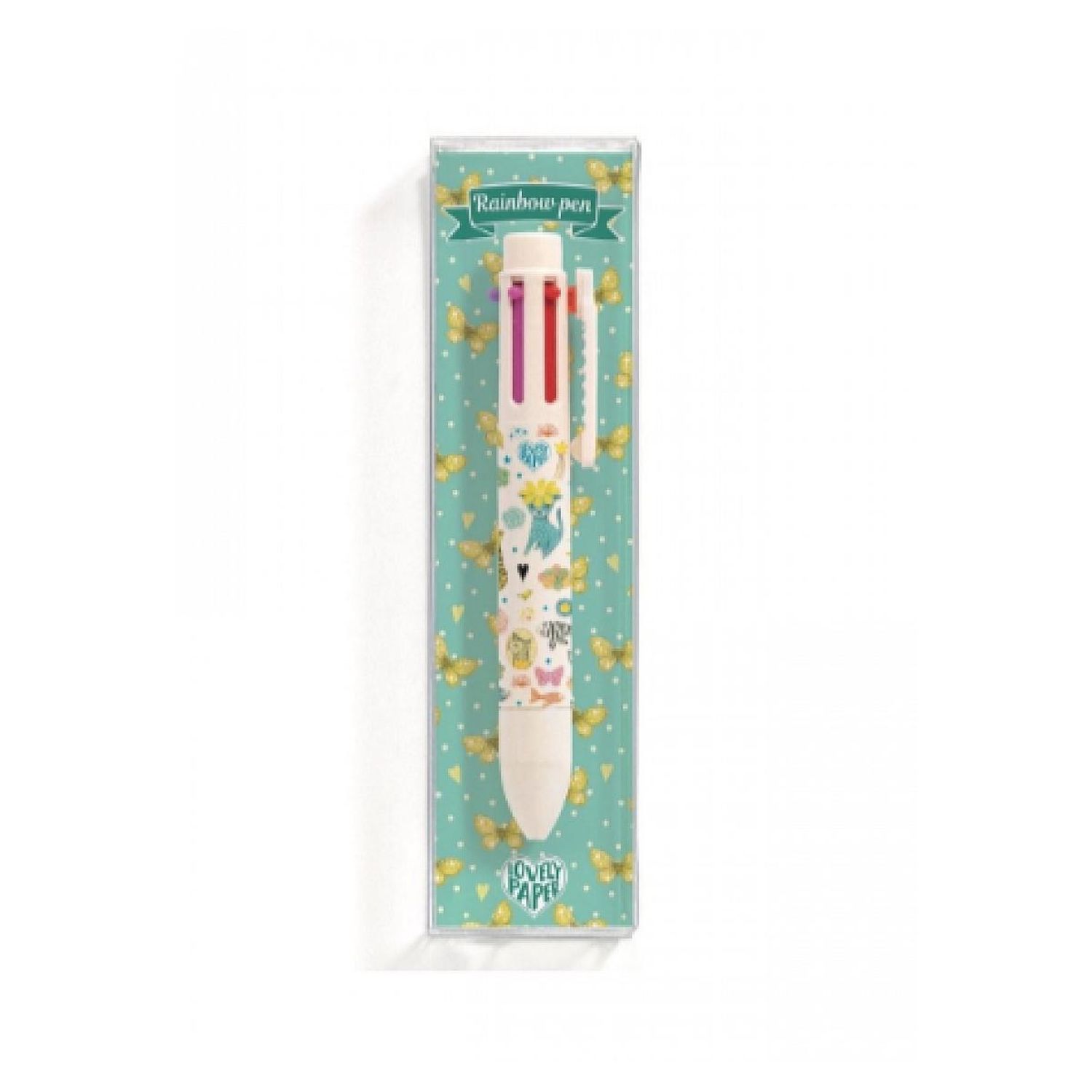 Découvrez le rainbow pen Elodie de Lovely Paper by Djeco, un stylo gel 6 couleurs à glisser dans son sac à main ou dans sa trousse. Vous apprécierez ses couleurs rouge, rose, violet, bleu, vert et orange, son clip pour l'accrocher au cahier et ses illustrations colorées. Un accessoire de papeterie i