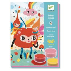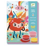 Coffret de sables colorés A croquer de Djeco, une activité créative pour les enfants de 5 à 8 ans, qui vont réaliser 4 magnifiques tableaux.