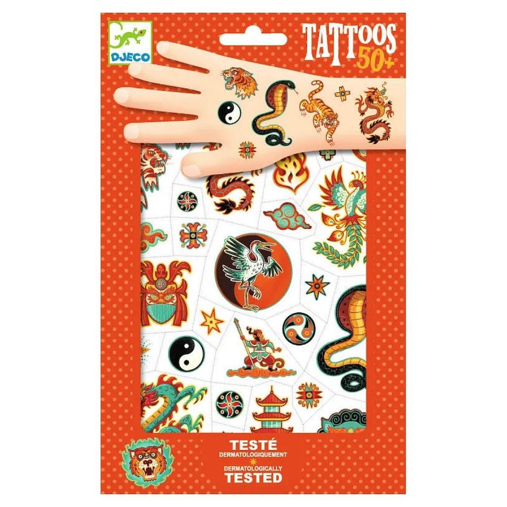 Deux planches de tatouages temporaires aux motifs inspirés des arts martiaux asiatiques pour avoir l'allure d'un vrai guerrier ! Spécialement conçus pour les enfants, ces tatouages temporaires sont faciles à utiliser: prédécoupés, ils s'appliquent avec un peu d'eau et sont testés dermatologiquement. Découpez, appliquez sur la peau, humidifiez et c'est tout ! Le tatouage se retire facilement avec de l'eau savonneuse ou avec un démaquillant doux.