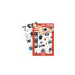 Des tattoos pour s'amuser pendant l'anniversaire et pourquoi pas compléter un déguisement. Ces motifs pirates avec effet métallisé plairont beaucoup aux petits garçons. Ce coffret contient 2 planches de tatouages différentes de 14 x 21 cm. Dimensions de la pochette : 14,5 x 23 cm. A partir de 3 ans. Attention ! Ne convient pas aux enfants de moins de 3 ans