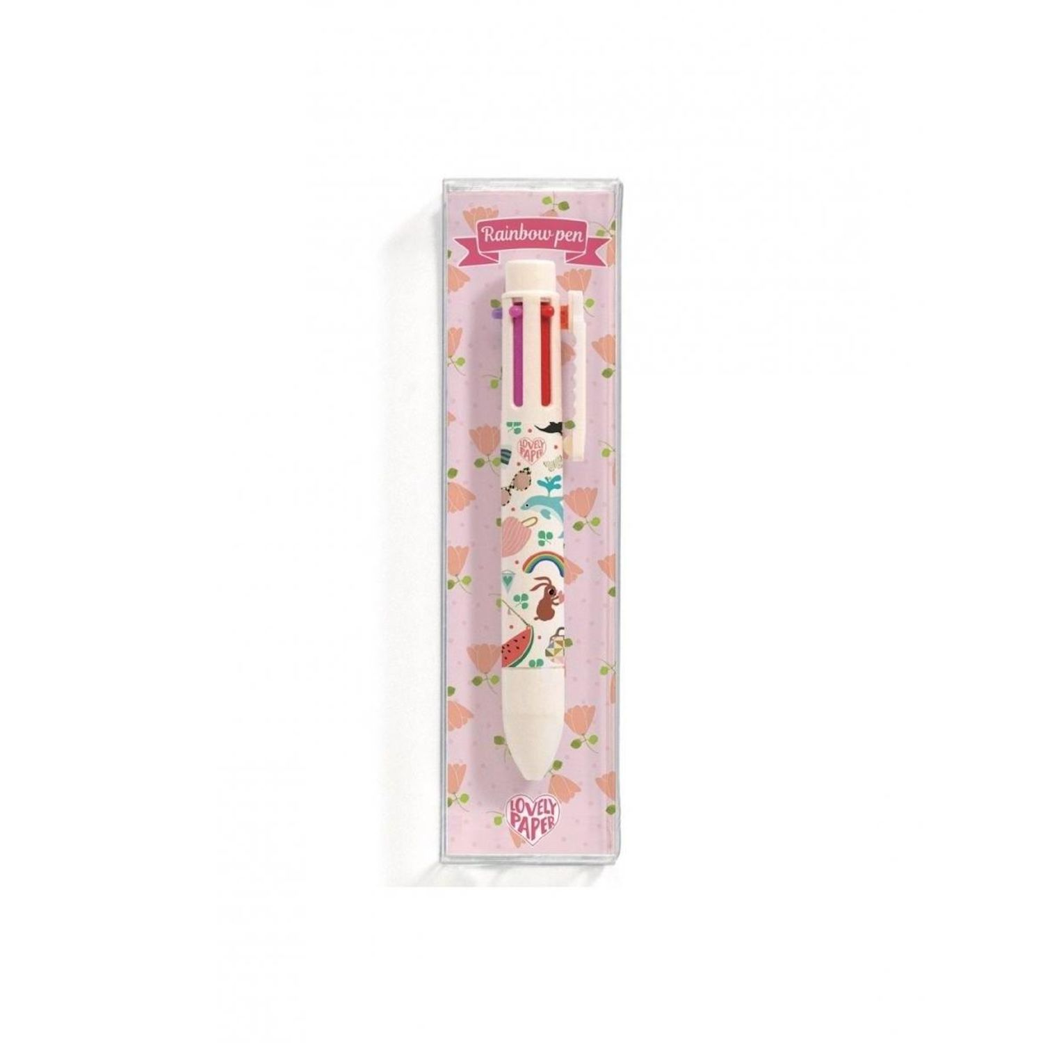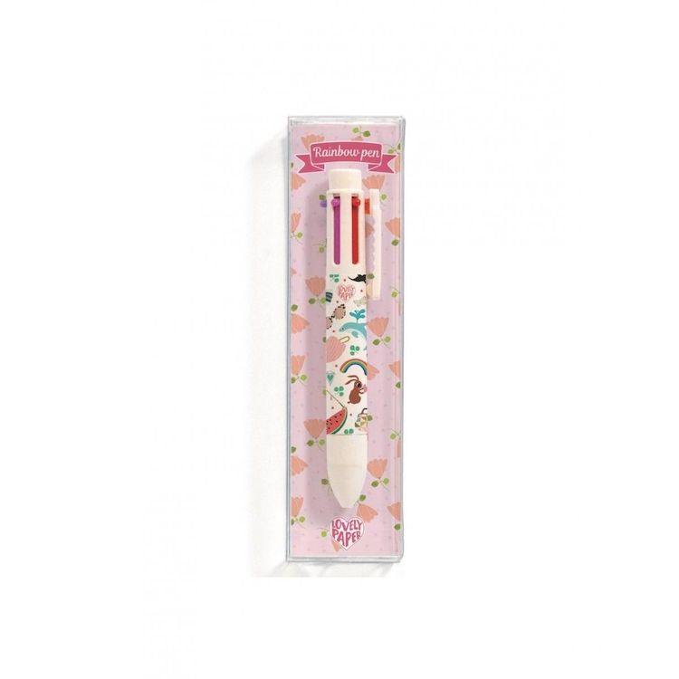 Découvrez le rainbow pen Tinou de Lovely Paper by Djeco, un stylo gel 6 couleurs à glisser dans son sac à main ou dans sa trousse. Vous apprécierez ses couleurs rouge, rose, violet, bleu, vert et orange, son clip pour l'accrocher au cahier et ses illustrations colorées. Un accessoire de papeterie in