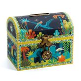 Découvrez cette superbe tirelire qui peut aussi servir de coffre à trésor. Un joli objet de décoration, avec ses illustrations de dinosaures, qui trouvera sa place dans la chambre. Fermée d'un cadenas, la tirelire est fournie avec 2 clés pour pouvoir récupérer ses économies.