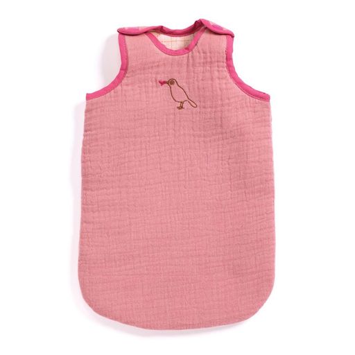 Une jolie turbulette rose avec un oiseau brodé pour que bébé passe une bonne nuit et ne se découvre pas ! Avec ses scratchs aux épaules, il est très facile d'y glisser son compagnon. Une turbulette de qualité et tendance, en coton ouaté imprimé à l'intérieur et double gaze brodé à l'extérieur. Un ac