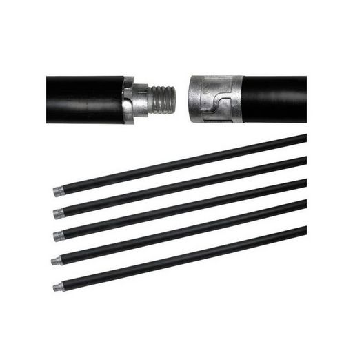 Permet le ramonage de conduits allant jusqu'à 7m.Kit de 5 cannes de ramonage avec embouts à visser en zamac. Compatible avec tous les hérissons avec embout femelle à visser (hérissons non fournis)