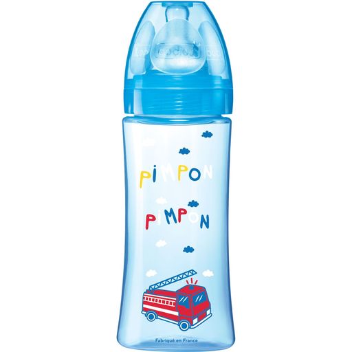 Biberon Initiation+ 330ml bleu pompier +6 mois tétine ronde 3 vitesses débit 3 "S’adapte au rythme de succion et à l'appétit de bébé pour une tétée en continu sans se fatiguer. -Une tétine ronde 3 vitesses : - Avec système anti-colique breveté intégré - En silicone extra-souple -Adaptée au rythme de succion de bébé -Une forme triangulaire unique pour une prise en main facile -Un col large pour un remplissage et un nettoyage facilités -Une graduation lisible adaptée aux mesures de lait dès 30 ml -Un capot ergonomique facile à ouvrir d’une seule main -Une base évasée pour un meilleure stabilité -Fabrication Française - Garanti Sans Bisphénol A et S