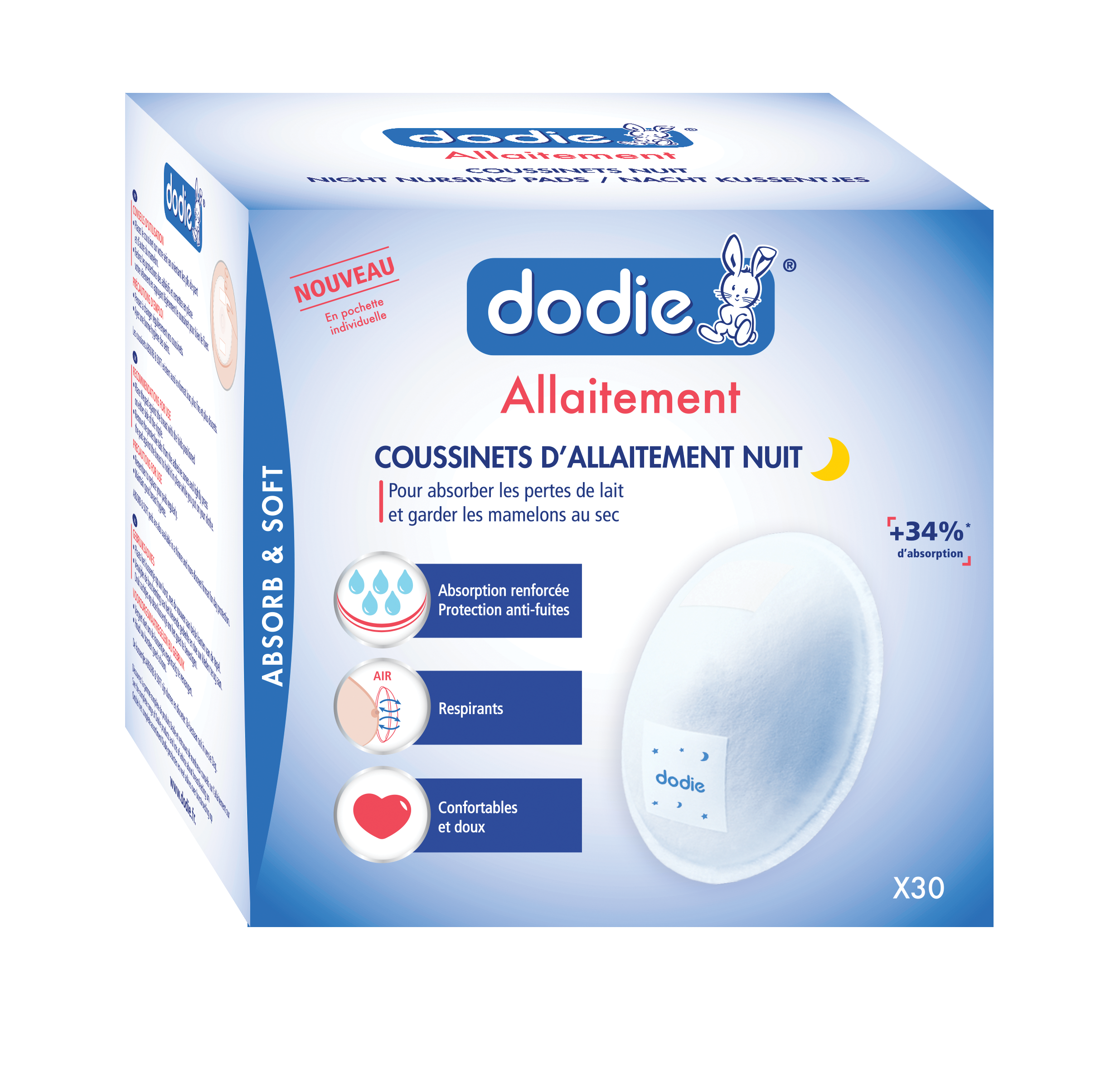 Coussinets d'allaitement Nuit en pochette individuelle x30