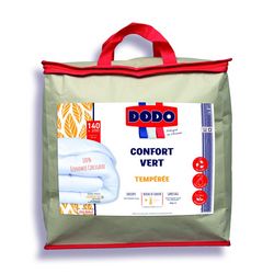 La Couette DODO Confort Vert est fabriquée et emballée avec des matériaux qui préservent l'Environnement. Le tissu, le garnissage ainsi que la housse d'emballage sont issus du recyclage de bouteilles PET. Housse d'Emballage recyclable développée et confectionnée avec des Matériaux à Base de Cellulose de Bois. Couette tempérée, pouvant être utilisée tout au Long de l'Année. Fabrication Française, qualité garantie.