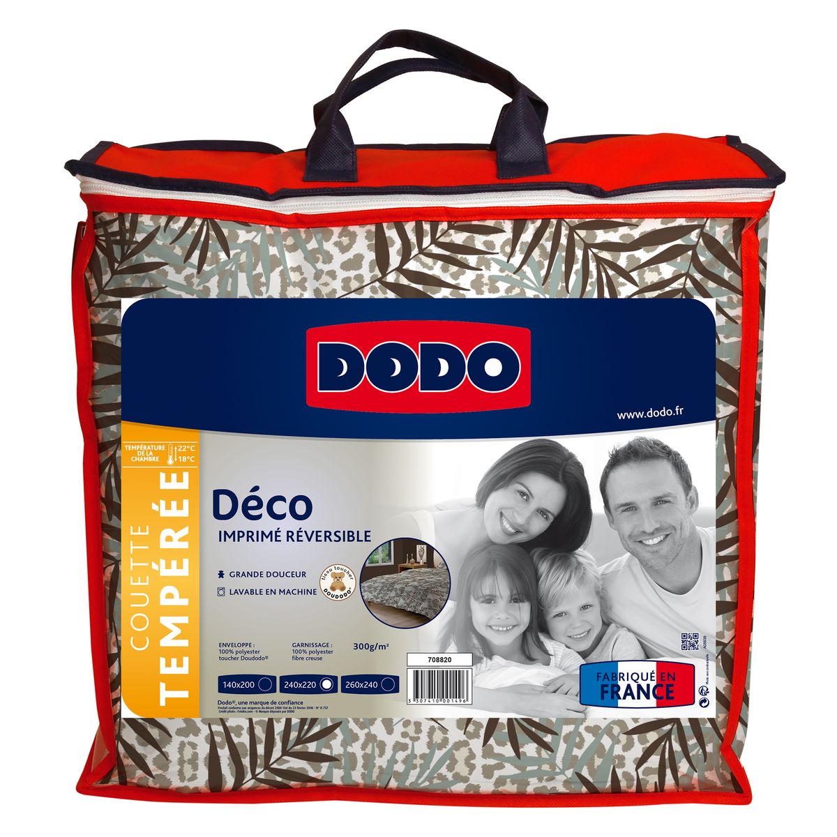 La Couette DODO Déco Jungle est confectionnée dans un Tissu au Toucher Doudodo. Cette couette imprimée réversible très déco au coloris Tropical rajoutera à votre chambre une jolie touche tendance. Son garnissage en fibre 100% Polyester, Creuse, permet une bonne Circulation de l'Air. Elle est si