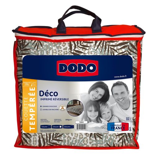 En savoir + La Couette DODO Déco Jungle est confectionnée dans un Tissu au Toucher Doudodo. Cette couette imprimée réversible très déco au coloris Tropical rajoutera à votre chambre une jolie touche tendance. Son garnissage en fibre 100% Polyester, Creuse, permet une bonne Circulation de l'Air. Elle est siliconée pour encore plus de Douceur. Couette tempérée, pouvant être utilisée tout au Long de l'Année. Fabrication Française, qualité garantie.