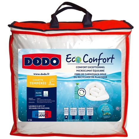 La Couette DODO Éco Confort est fabriquée avec des matériaux qui préservent l'Environnement. Le tissu ainsi que la fibre de garnissage SUPRELLE BLUE sont issus du recyclage de bouteilles PET. Couette tempérée, pouvant être utilisée tout au Long de l'Année. Fabrication Française, qualité garantie.