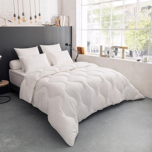 Cette couette tempérée peut convenir à la majorité des dormeurs et peut être utilisée toute l'année dans les chambres dont la température se situe entre 18 et 22°C. Elle régule la température du corps pour un confort maximum et un sommeil plus réparateur.