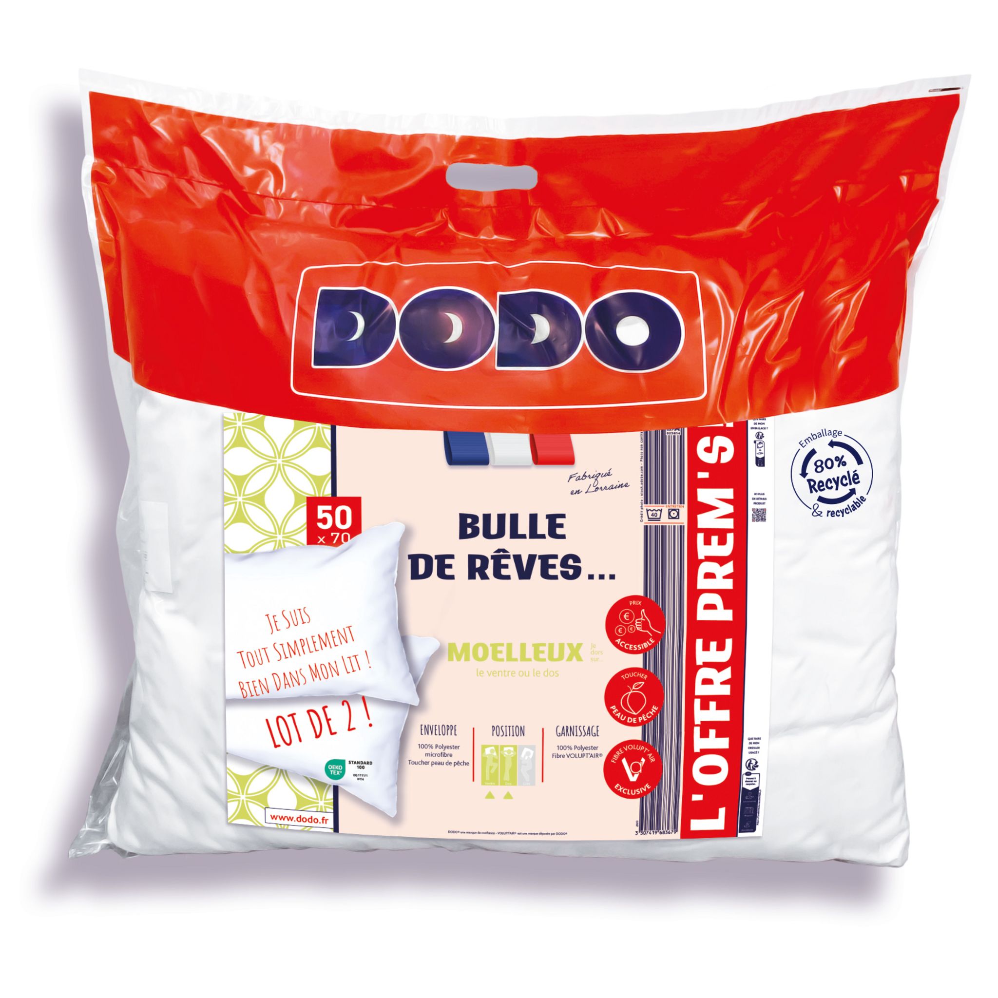 DODO Lot de 2 oreillers confort moelleux en microfibre toucher peau de pêche BULLE DE REVES