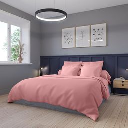 On adore le coloris rose de cette housse de couette en satin de coton, douce et soyeuse.