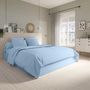 Le coton 57 fils/cm² est une matière phare lorsqu'il est question de choisir son linge de lit. Il convient aux personnes souhaitant s'offrir du linge de lit confortable et de qualité. Son coloris givre, croisé entre le bleu et le gris, est tendance !