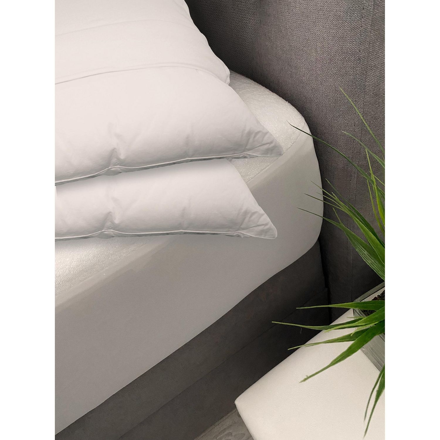 LOT de 2 Protège-Oreillers DODO Absorbant L'ESSENTIEL CONFORT - PRIX MALIN ! - Coloris : Blanc - Composition : Molleton Gratté 2 Faces 70% Coton Recyclé - 30% Polyester Recyclé Traité BIOME NTL Anti-Acarien et Antibactérien - aux Actifs d'Origine Végétale, à Base d'Huile de Lin - Densité : 160 g/m² - Confection : Finition Rabat - Conditionnement : COLIS - Livraisons Magasins sur Palettes LPR