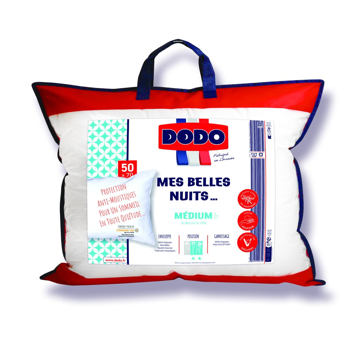 Confectionné dans une Enveloppe Tissu au Toucher Peau de Pêche tout Doux, Traitée Anti-Moustiques - Substance Active d'Origine Végétale, pour une Protection Sûre et Efficace. Garni de Fibre 100% Polyester VOLUPT'AIR® - Exclusivité DODO®, Creuse et Siliconée pour une bonne Circulation de l'Air et enc