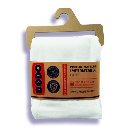 Protège-Matelas DODO Imperméable Anti-Acariens, Antibactérien et Anti-Odeurs QUALI'NET - LES INDISPENSABLES ! - Coloris : Blanc - Composition Dessus : Molleton Gratté 100% Coton Traité Anti-Acariens, Antibactérien et Anti-Odeurs - Composition Dessous : Membrane Imperméable 100% Polyuréthane Souple et Micro-Respirant - Densité : 160 g/m² - Confection : Forme Drap Housse - Bonnets Extensibles 100% Polyester Jersey pour une Adaptabilité Maximale - Nu d'Emballage avec Cintre Packbordable + 1 Encart Bandeau