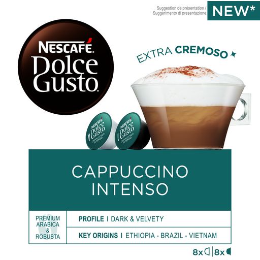 Café torréfié moulu et lait entier en poudre avec sucre Sous sa mousse de lait onctueuse, découvrez toute la force d'un espresso d'Amérique du Sud, d'Afrique et d'Asie. Nos créateurs de café ont séléctionné une méthode de torréfaction à haute température, révélant le brun profond des grains de café et libérant des arômes puissants et de caractère, pour vous offrir une dégustation Cappuccino encore plus intense.