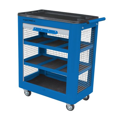 Cette servante d'atelier permet de stocker 60 Kg d'outils dans 3 compartiments + le plateau tous équipés d'un tapis antidérapant. Une fermeture centralisée par cadena (fourni) garanti la sécurité des outils. Les déplacements sont facilités grâce à ses 4 roues (dont 2 avec freins) ainsi que sa poignée latérale. Grillage ajourée pour visualiser rapidement les outils.