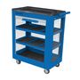 Cette servante d'atelier permet de stocker 60 Kg d'outils dans 3 compartiments + le plateau tous équipés d'un tapis antidérapant. Une fermeture centralisée par cadena (fourni) garanti la sécurité des outils. Les déplacements sont facilités grâce à ses 4 roues (dont 2 avec freins) ainsi que sa poigné