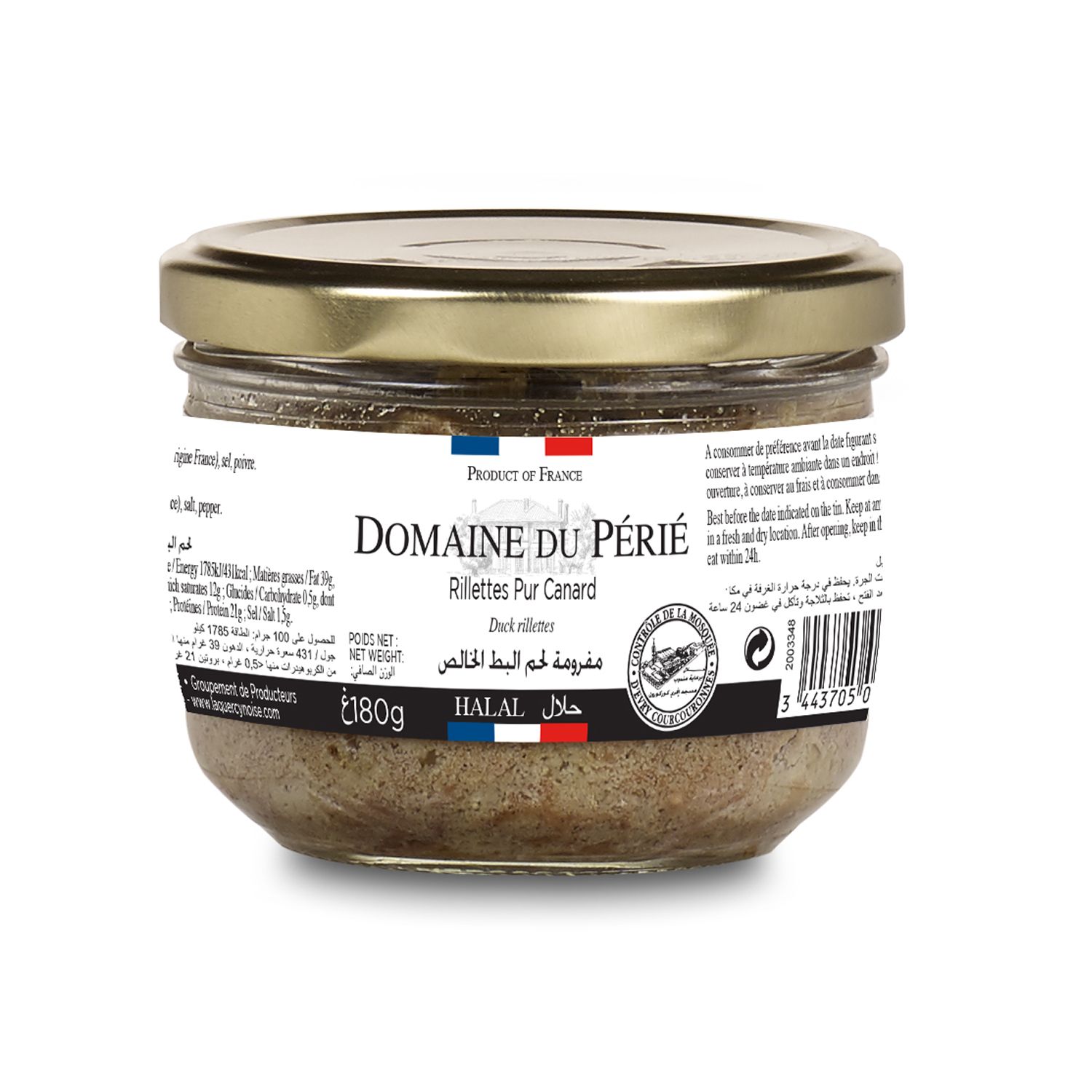 RILLETTES PUR CANARD FRANCE HALAL 180G CONSERVE BOCAL
