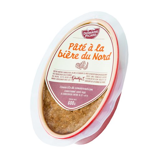 Ingrédients : "Viande de porc (81% - Origine : France), Bière du Nord (11% - GLUTEN), gélatine de porc, sirop de glucose, protéines de LAIT, blanc d'OEUF, sel, colorant : E150A, oignons rôtis (BLE), épices, aromates(CELERI), dextrose, poudre de champignons, bouillon, arômes naturels, antioxydants : E300, E301, E316, conservateur : E250