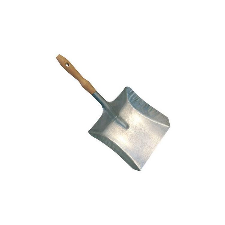Tole d'acier zinguée 0.8mm d'épaisseur. Manche en bois. Dimensions totales (LxlxH) : 470x235x100mm.