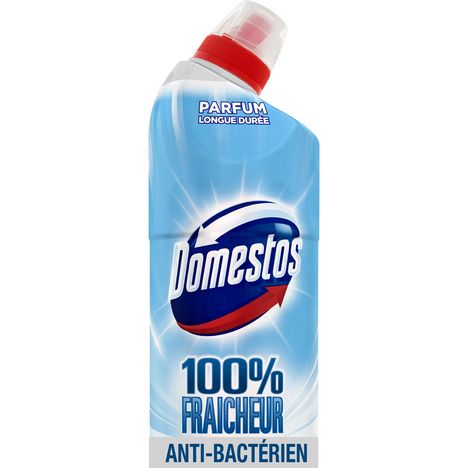 Gel Wc Nettoyant Le gel antibactérien Domestos 100% Fraicheur Océan révolutionne l'entretien de vos toilettes pour y laisser un parfum frais longue durée ! Grâce à son embout multi jets et sa formule puissante, Domestos 100% Fraicheur Océan éradique les germes et la saleté, même dans les zones les plus difficiles d’accès. Sa formule ultra épaisse adhère aux parois pour une propreté impeccable jusqu'au prochain nettoyage. La gamme de gels parfumés Domestos 100% fraicheur est efficace contre le calcaire et désinfecte à 100%. Domestos 100% fraicheur océan, la garantie d’une fraicheur intense dans vos toilettes ! Pour un résultat optimal, essayez les blocs Domestos Power 5 ! Domestos est une marque de produits WC historique, qui existe depuis 1929. La mission Domestos depuis bientôt 90 ans est d’être l’exterminateur des bactéries. A l’origine, Domestos était un désinfectant particulièrement efficace qui avait pour but d’éradiquer les virus de l’époque. Très vite, la lutte contre les maladies liées au manque d'hygiène devient l'ADN de la marque. En 1978, la marque Domestos innove en lançant son Gel Javel, qui réunit pour la première fois en un seul produit un nettoyant et un désinfectant. Depuis, la gamme Domestos n'a cessé de se développer et d'innover : gels avec javel, gel détartrant, gels surpuissants sans javel,... Tous ces produits sont bactéricides et contribuent à faire de Domestos une marque experte dans l'entretien et l'hygiène des toilettes. arque engagée, Domestos s’associe en 2010 avec l’Organisation Mondiale des Toilettes (World Toilet Organization, association à but non lucratif), qui sensibilise les consommateurs à l’hygiène, tout comme le faisait le fondateur Domestos. Egalement depuis 2012, Domestos, la fondation Unilever et l’UNICEF s’associent pour améliorer les conditions sanitaires à travers le monde. Ce gel antibactérien Wc Domestos tue 99,9% des bactéries et virus.
