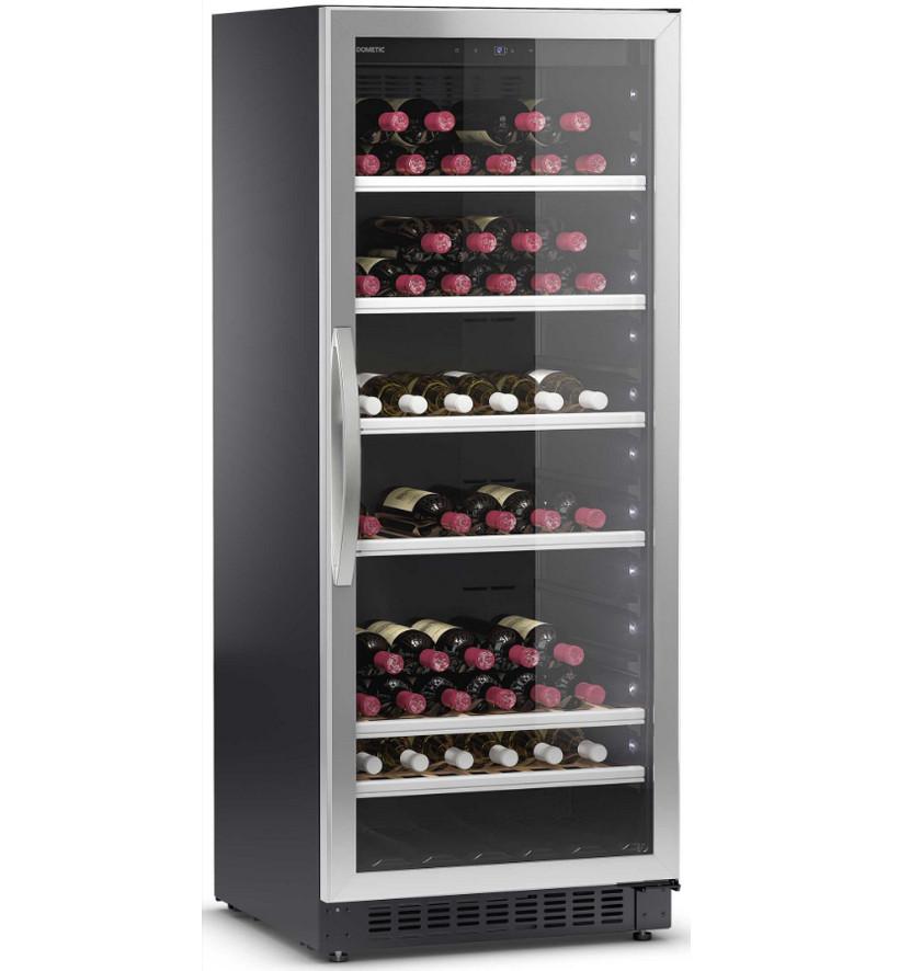 Dometic C101G Cave à vin de service Dometic C101G à compression avec porte en verre. Design altique pour un espace de stockage de vin exceptionnel : Conservez de manière professionnelle le vin à température de service à l'aide de ce réfrigérateur à vin à zone unique. Elle peut accueillir 101 bouteilles de Bordeaux, joliment présentées derrière une porte en verre à 3 couches, agrémentée d'un éclairage blanc LED latéral qui s'étend sur toute la hauteur de l'armoire. Idéal pour l'usage intégré ou indépendant, il s'agit d'un beau complément pour tout restaurant, bistrot ou bar d'hôtel.En plus d'un excellent espace de stockage de vin, la Dometic C101G est un complément attractif pour tout restaurant ou bar d'hôtel. Elle présente un design altique, avec une porte en verre à 3 couches, avec cadre en acier inoxydable et un éclairage LED blanc qui s'étend sur toute la hauteur de l'armoire. Elle offre des conditions de stockage professionnel et de vieillissement pour 101 bouteilles de Bordeaux et un accès pratique avec six étagères coulissantes en bois. Grâce à sa technologie de chauffage et de refroidissement bien conçue, votre température choisie est atteinte rapidement et maintenue de façon fiable. Tandis qu'un système efficace de circulation de l'air, combiné à un réservoir d'eau, crée un climat parfait pour que votre vin puisse développer pleinement son potentiel.