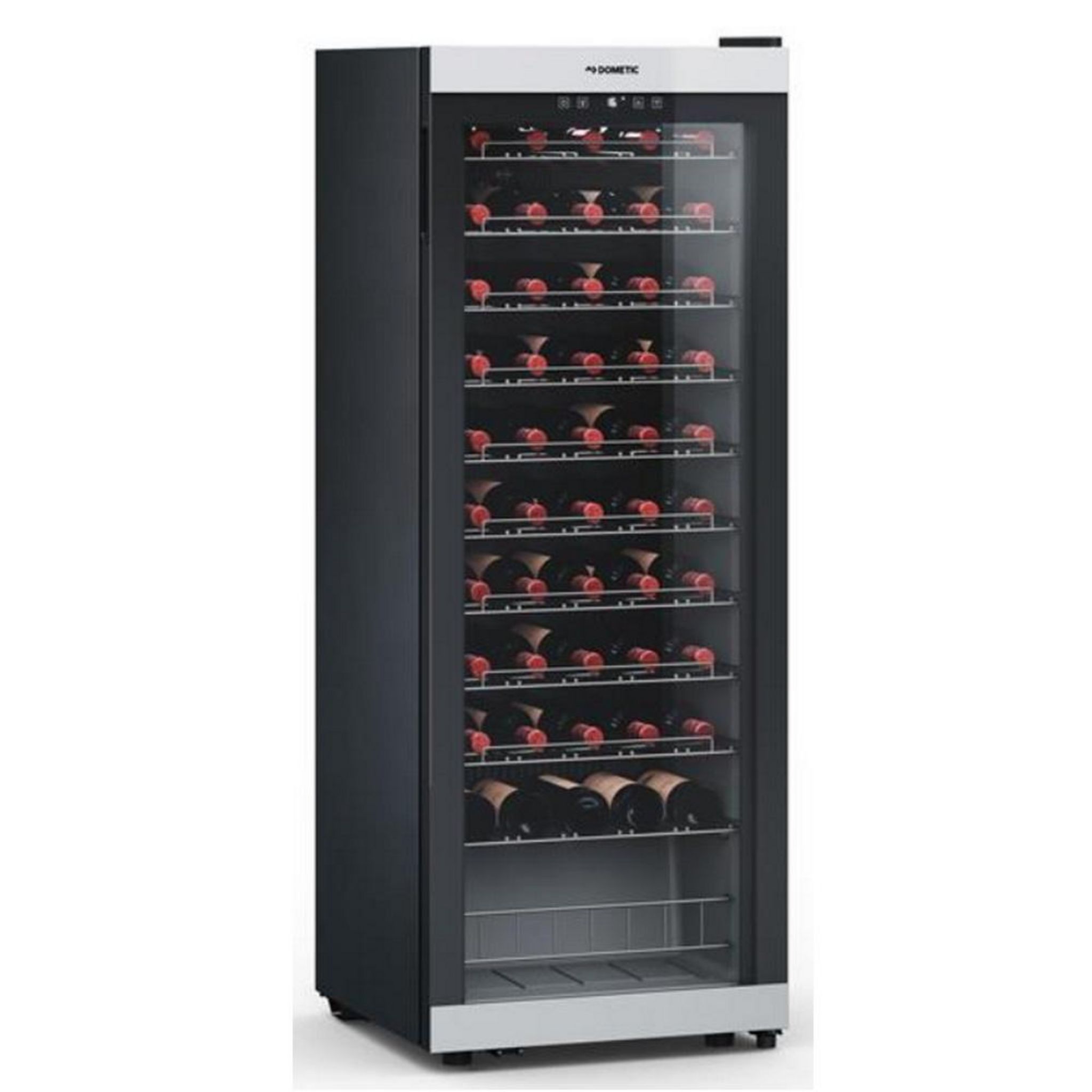 Dometic C55F Cave à vin monozone Classic Dometic C55F. Technologie de refroidissement à compression (Gaz R600a) efficace et puissante : elle maintient une température spécifique entre 5 et 22 °C. Grâce à sa technologie de chauffage et de refroidissement bien conçue, la température choisie est attein
